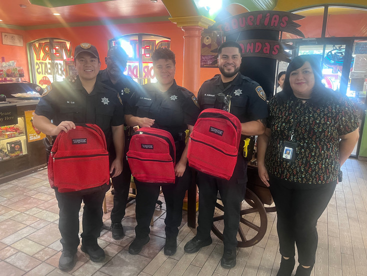 Nuestro evento de regalo de mochilas de regreso a clases fue un gran éxito, distribuyendo cientos de mochilas y útiles escolares en colaboración con Boost Mobile y el departamento de policía local.