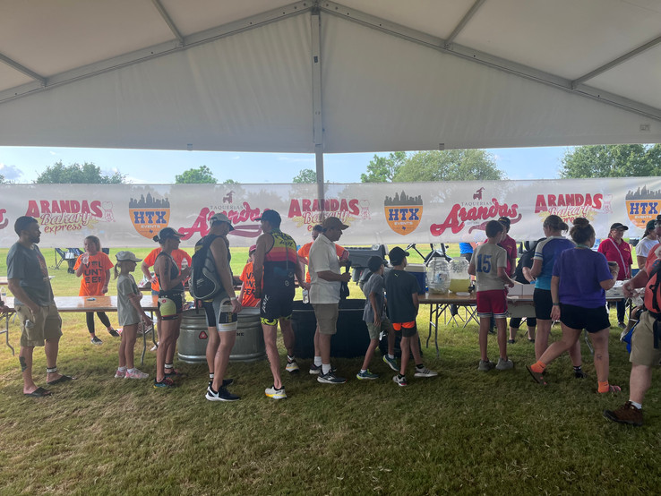 Los triatletas participantes en el triatlón Bayou City pudieron reponerse de su esfuerzo con la comida que Taquerias Arandas y Arandas Bakery regaló a todos los finalistas que se acercaron a nuestras carpas.